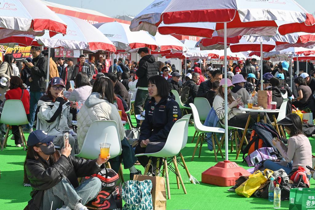 2026年3月13日,如潮般的游客在上赛场外的汽车文化节场地享受美食,等待下午F1赛开始。
